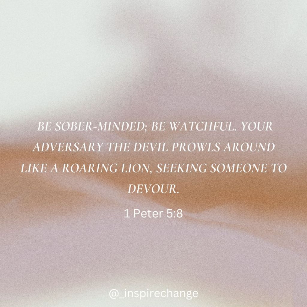 Be sober-minded; be watchful. Your adversary the devil prowls around like a roaring lion, seeking someone to devour – 1 Peter 5:8