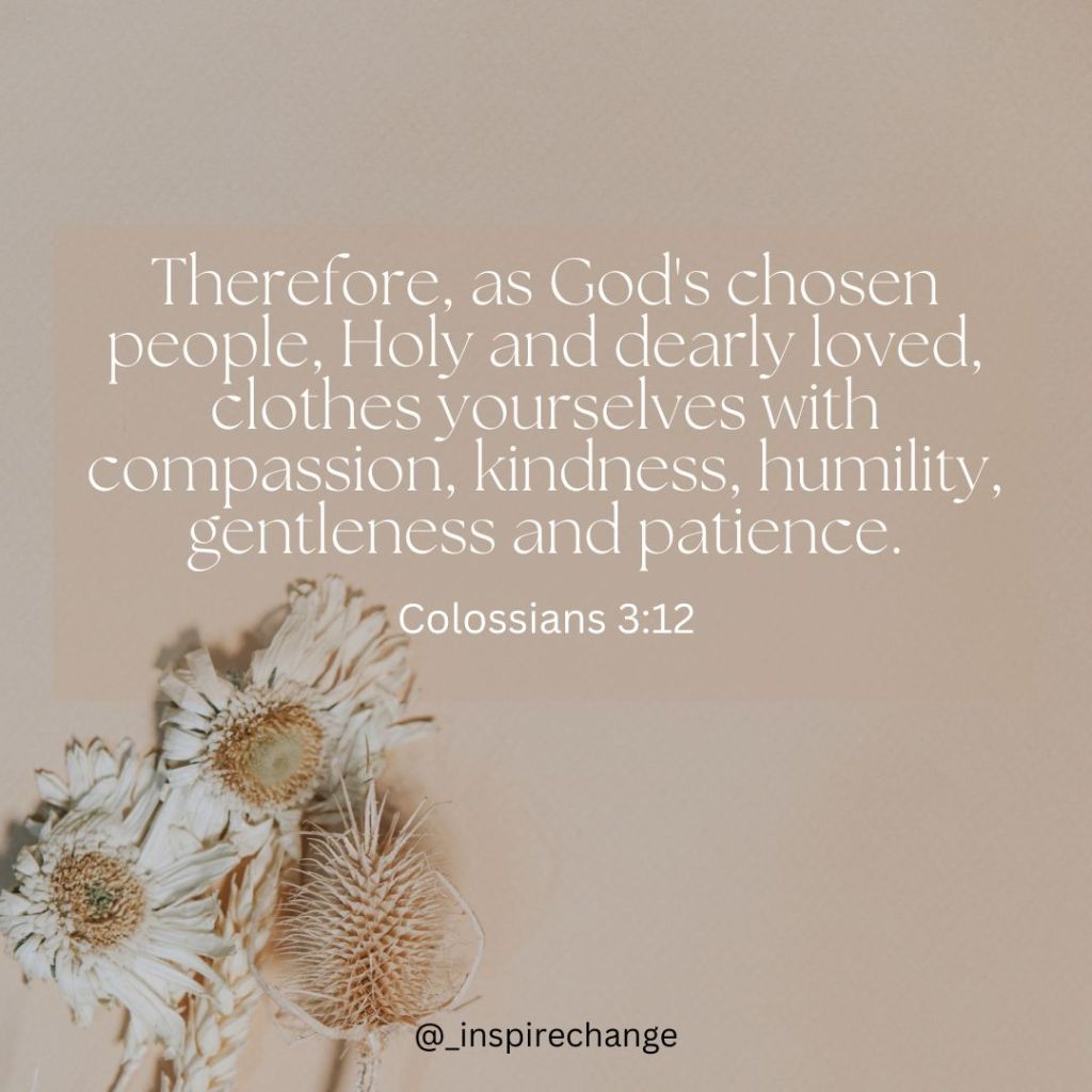 Therefore, as God’s chosen people, Holy and dearly loved, clothes yourselves with compassion, kindness, humility, gentleness and patience- Colossians 3:12