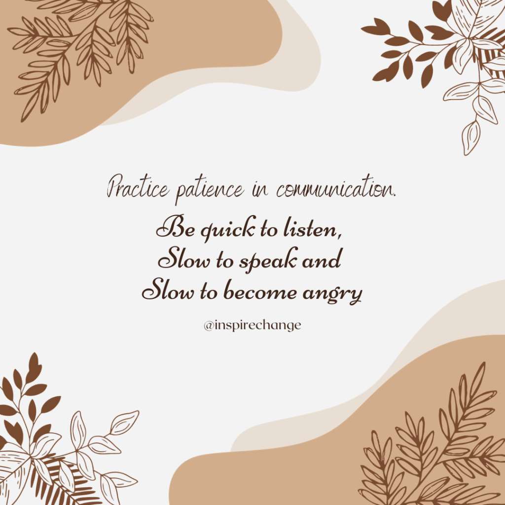 - Being slow to become angry (practising patience, self-reflection, and compassion)