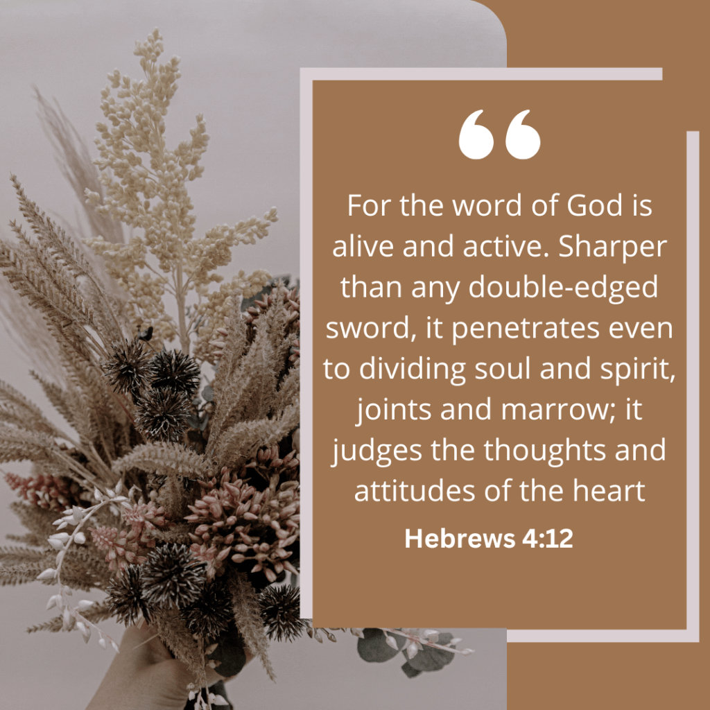 For the word of God is alive and active. Sharper than any double-edged sword, it penetrates even to dividing soul and spirit, joints and marrow; it judges the thoughts and attitudes of the heart (Hebrews 4:12).